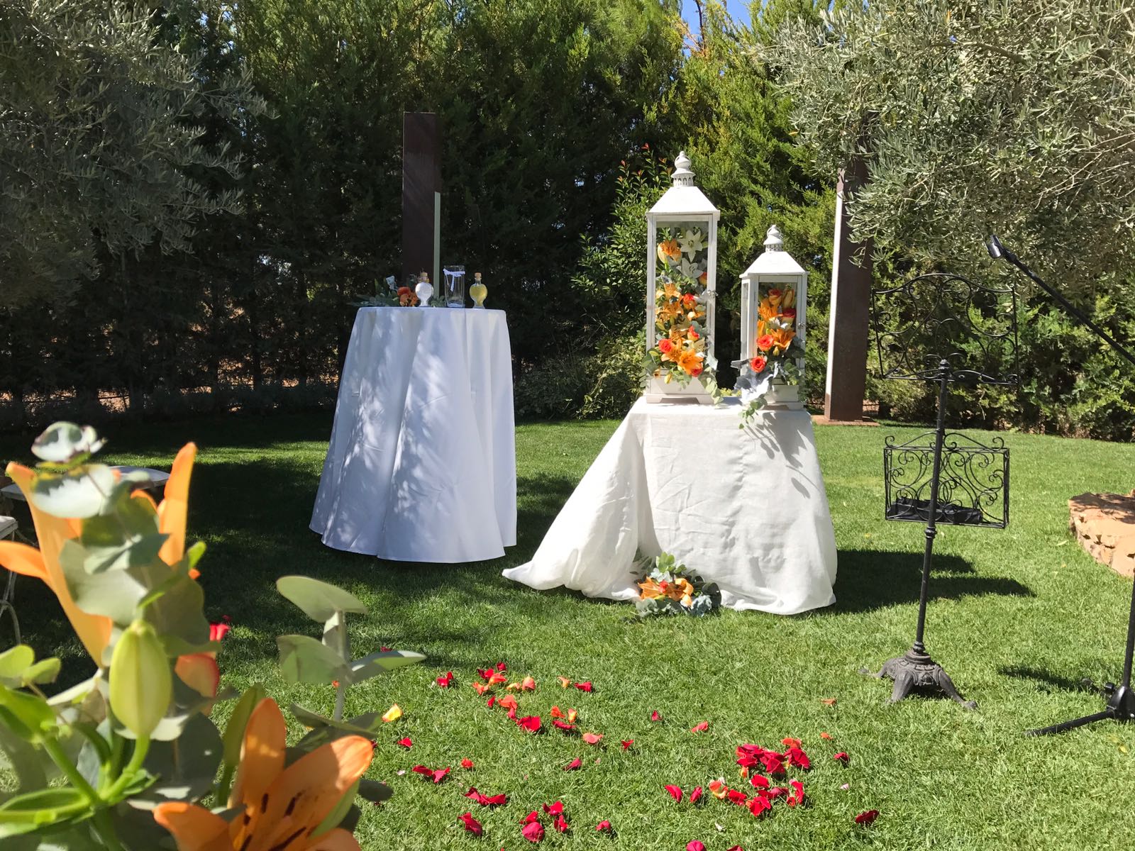 Sin duda, la zona destinada al altar de la ceremonia civil debe tener una decoración cuidada, ya que es uno de los espacios más importantes de la boda. La decoración del altar se realiza, fundamentalmente, con flores, aunque siempre lleva algún elemento decorativo especial: un arco, telas, elementos vintage como pueden ser unos faroles.