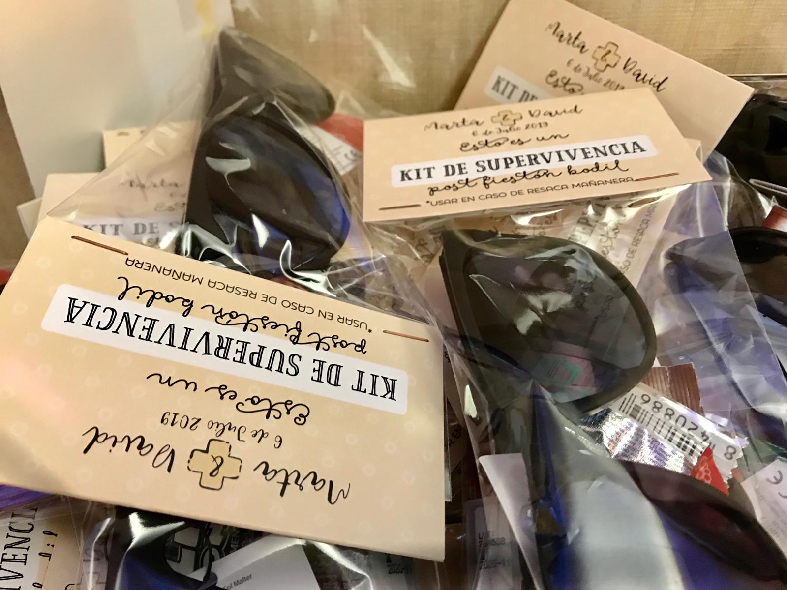 Hay momentos en la boda que se recuerdan porque resultan graciosos, como este «Kit de supervivencia post fiestón bodil» que regalaron a sus invitados los novios. Seguro que recuerdan cómo se preocuparon por su estado físico tras la celebración ?.
