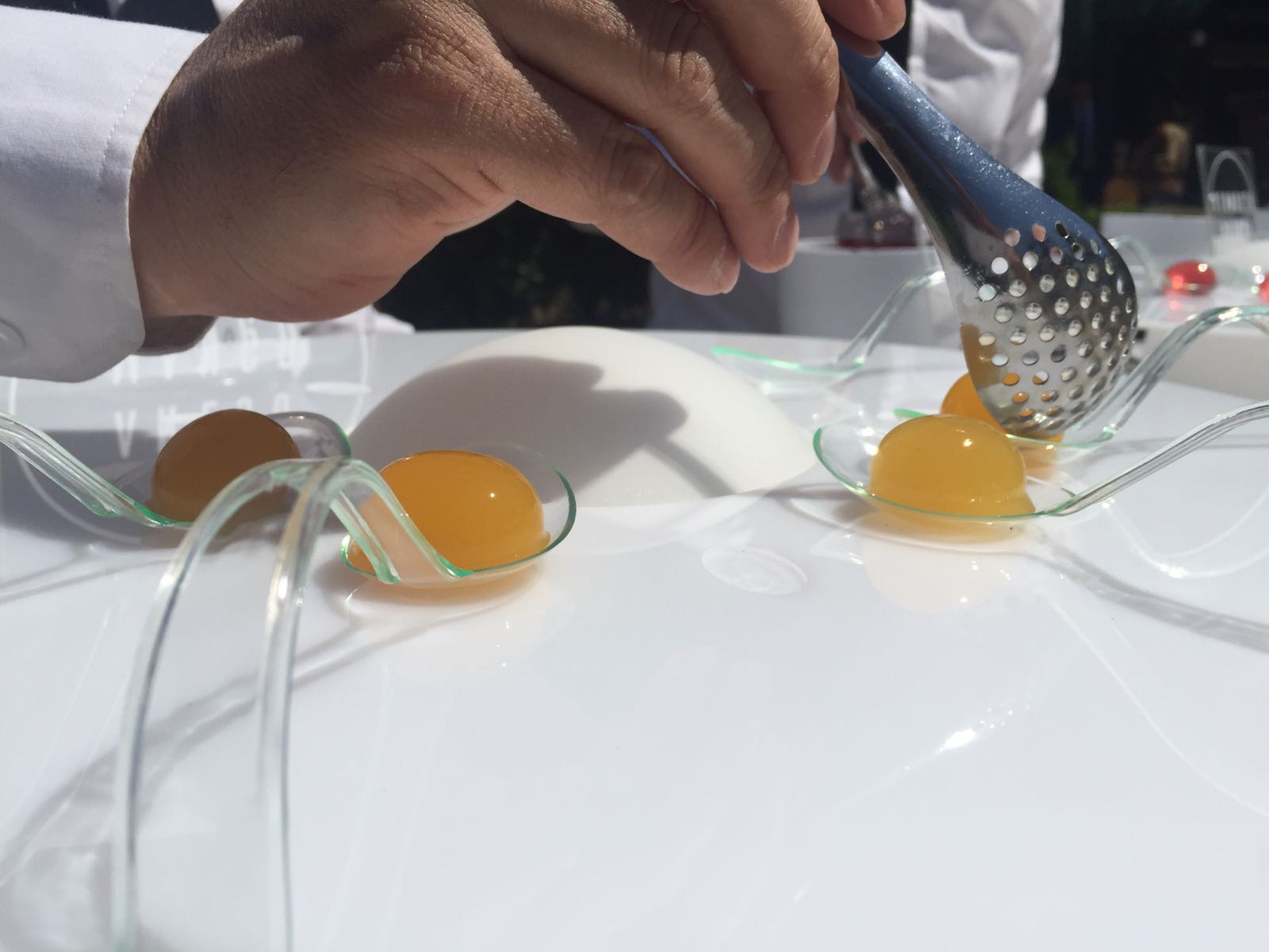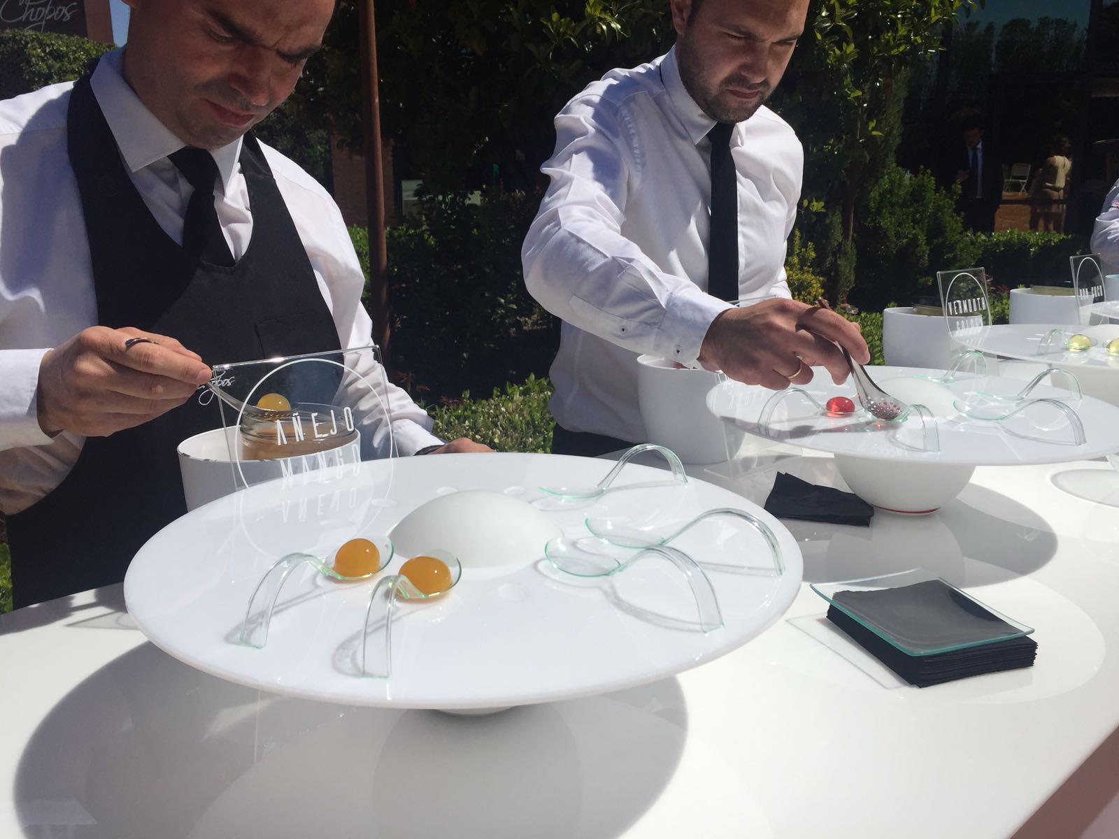 ¿Os gusta? Pero las novedades no son sólo «físicas». También hemos renovado nuestros aperitivos e introducido nuevos platos que hagan que vuestra boda sea única e inolvidable para vuestros familiares y amigos. ¿Os imagináis tomando un vermut de un bocado? ¿O degustando un gin-tonic de una cucharada? Como podéis ver en las fotos, en Los Chopos es posible con nuestras nuevas esferificaciones, que permiten que estos sabores aparezcan de forma repentina en la boca con unas sensaciones maravillosas.