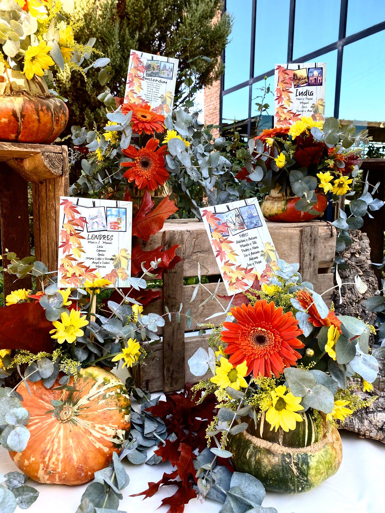 Otro momento en el que brillan las flores es en los Seating Plan. En ocasiones pueden pasar un poco desapercibidas, pero dan un toque de alegría a este especial rincón donde se detienen los invitados para saber el lugar que ocuparán durante el banquete.