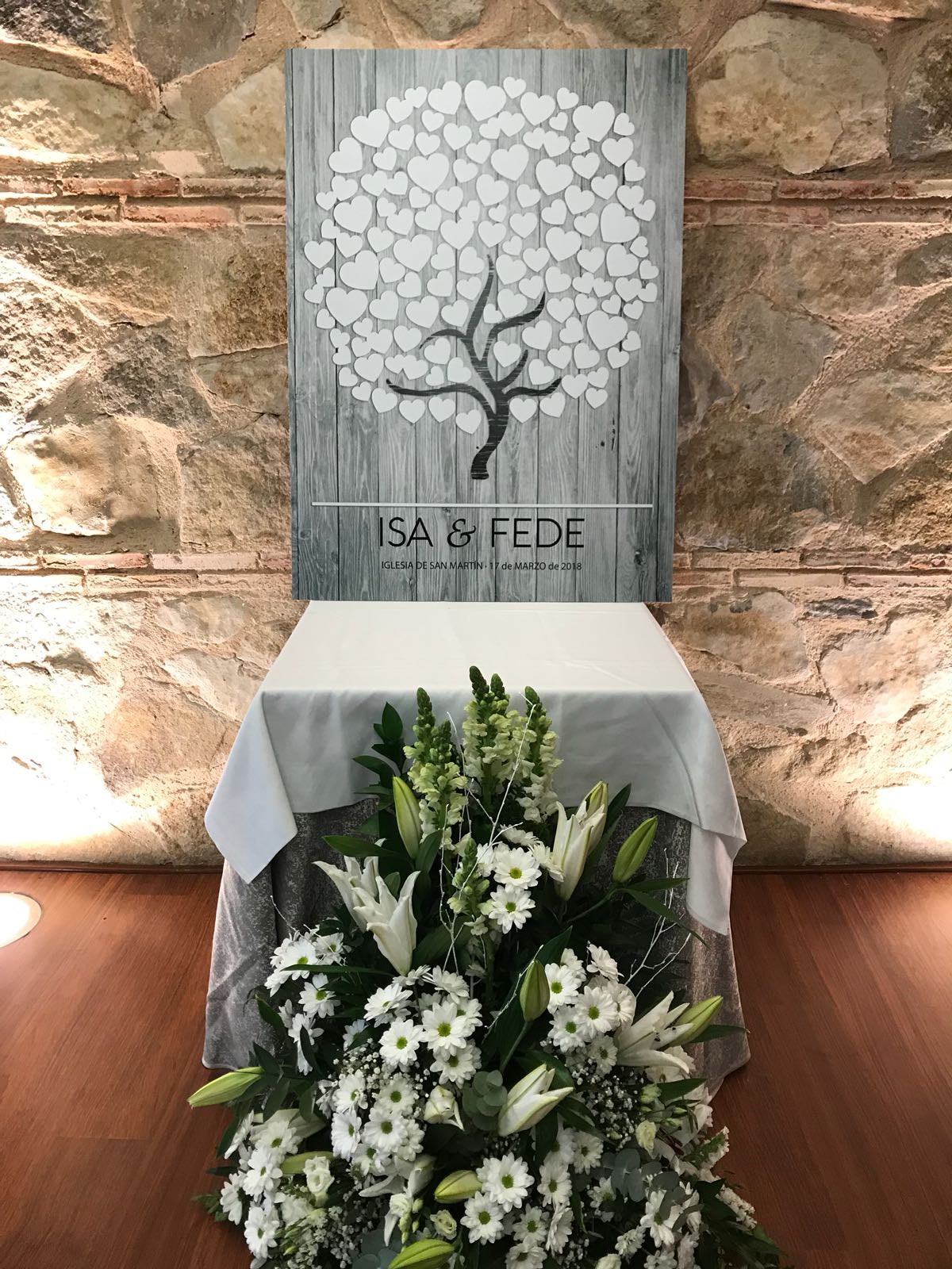 Y muy en la línea decorativa estaba el Seating Plan para que todos los amigos y familiares supieran donde debían sentarse antes de entrar en el salón de banquetes.