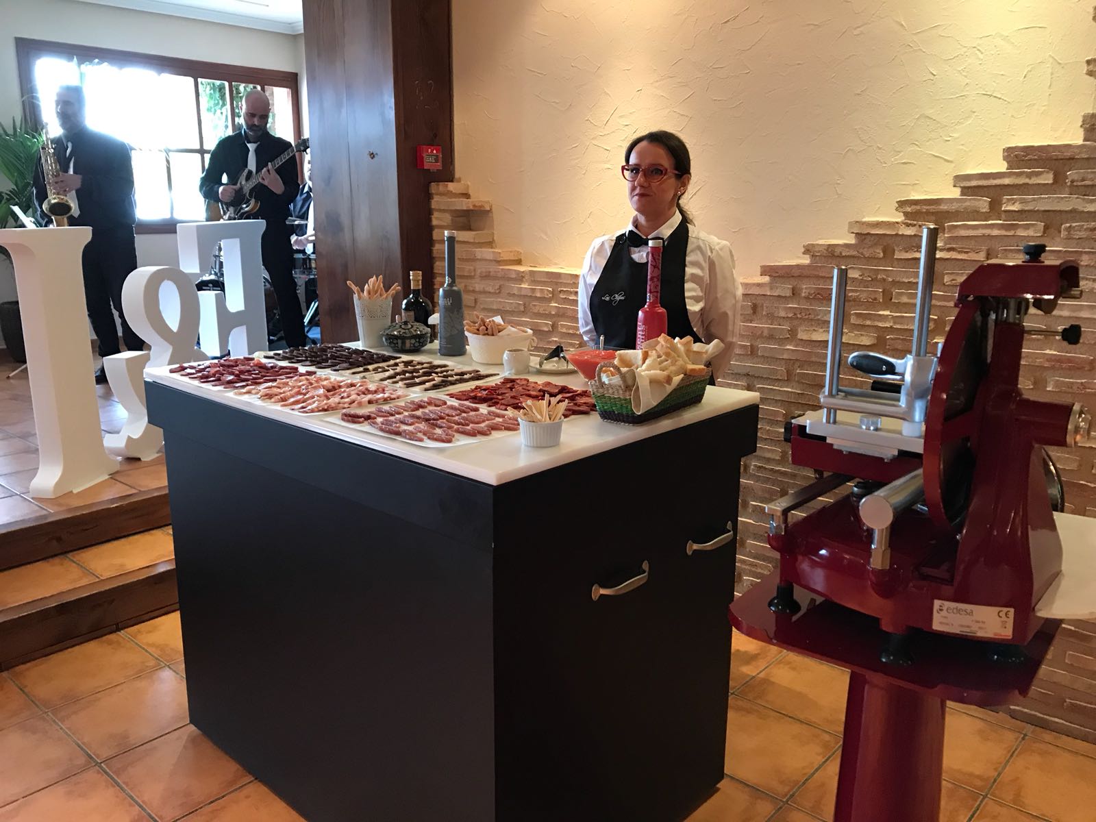 Pero antes, ¿cómo iban a faltar unas mesas de degustación? Nuestros amigos Isa y Fede se decantaron por esta mesa de embutidos y por la tradicional de jamón al corte. Os podemos asegurar que hicieron las delicias de todos los invitados a este maravilloso enlace. ¿No os dijimos que era una boda cuidada en todo detalle?