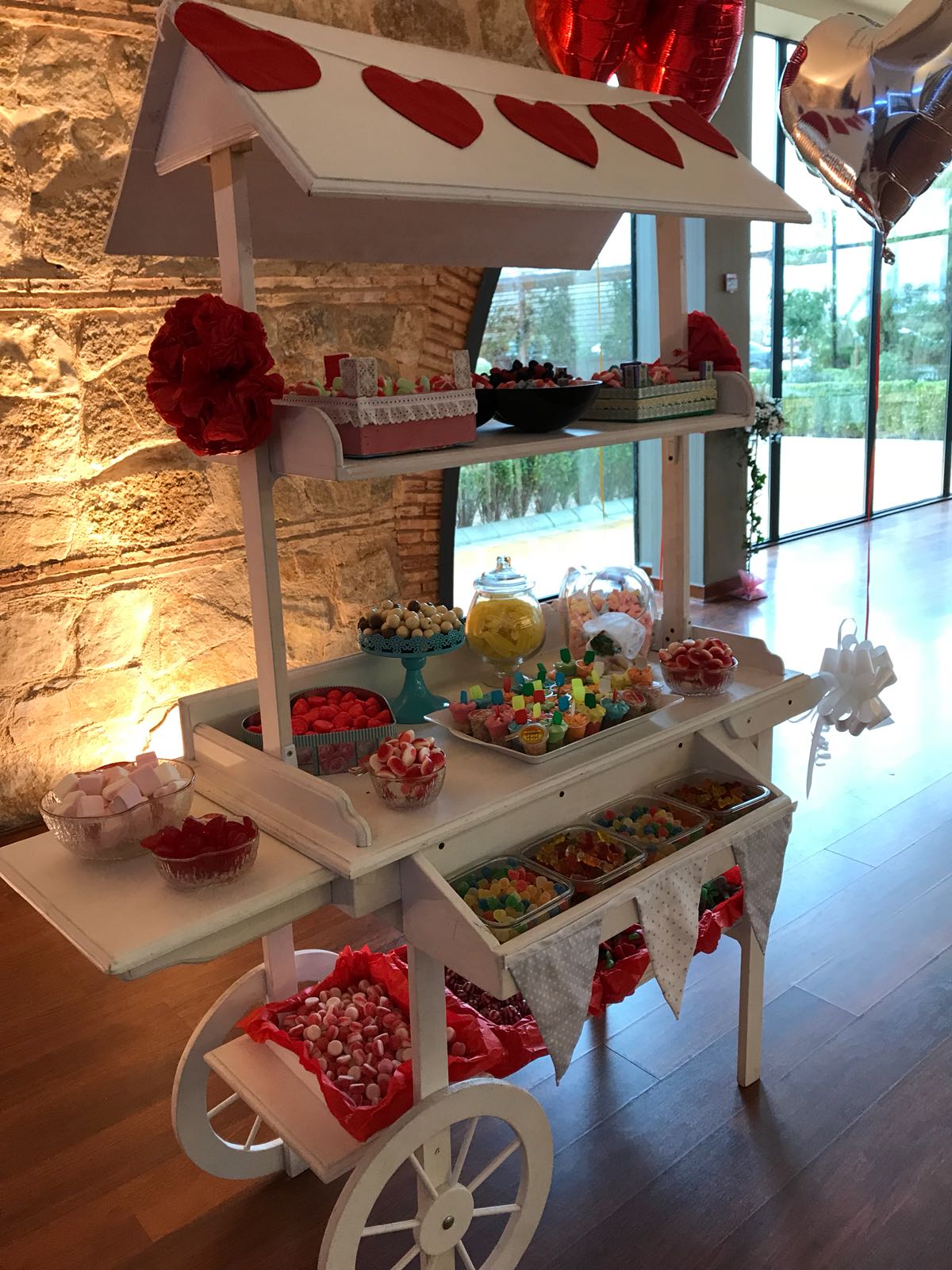 Y tras el banquete, aunque a algunos ya les gustaría dar cuenta de ellas antes de comer, no hay quien se resista a este carrito de chuches. Por cierto, gentileza del hermano de la novia… Todo un detallista ?.