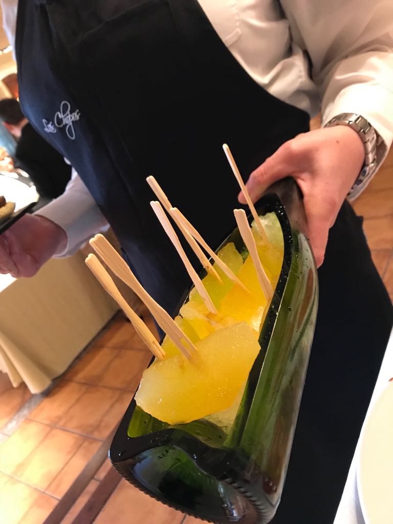 Y para el final os hemos querido dejar una pequeña sorpresita. ¿Qué os parece este pincho de manzana osmotizada de ron que os enseña Raquel?