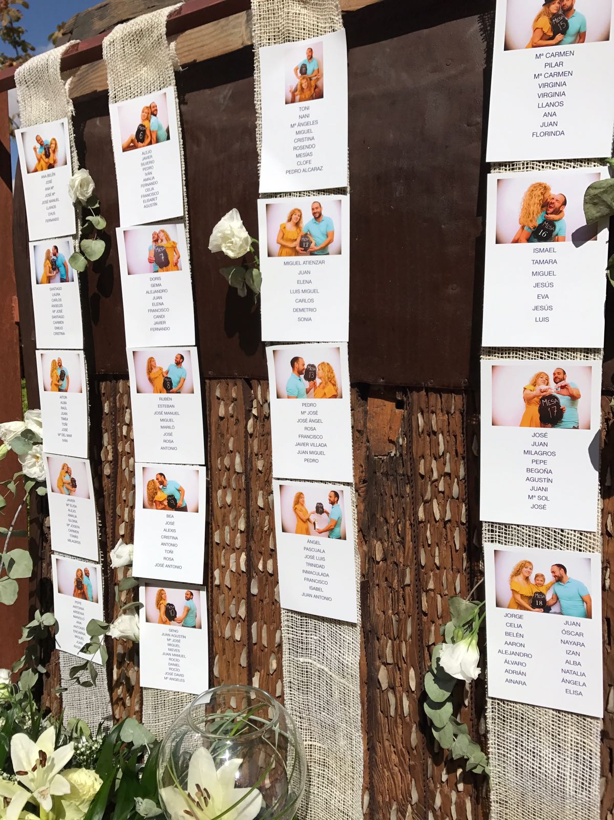 El primero que hemos elegido, aunque reiteramos que el orden es aleatorio, es este Seating Plan en el que los novios son los protagonistas de las fotos en las que se enumeran los nombres de los invitados. En diferentes posturas, arrancan la sonrisa de quienes lo ven. Viendo las fotos, ¿no os da la sensación de que los conocéis de toda la vida? Entonces, objetivo cumplido. Un Seating Plan perfecto.