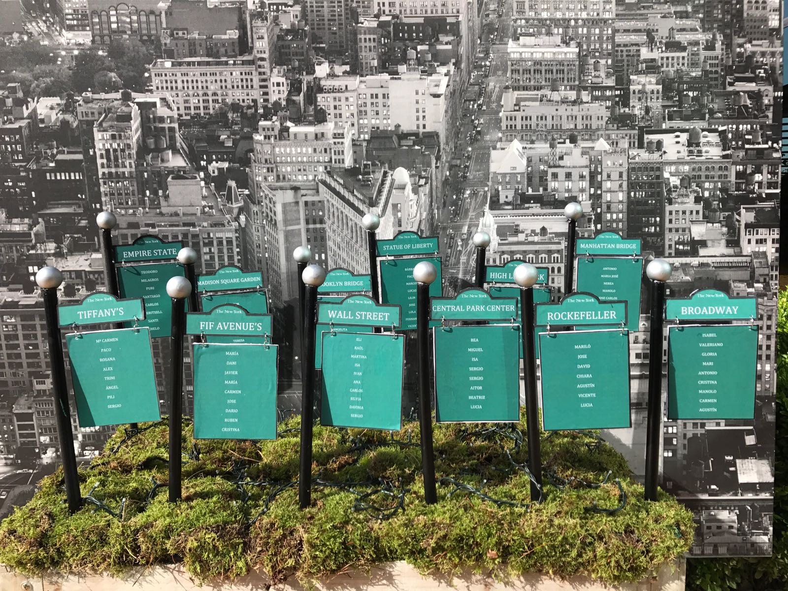 Este Seating Plan nos gustó mucho por su conjunto. La preciosa foto de la Gran Manzana, los carteles típicos de la ciudad. Parece que te traslada a Nueva York. ¿Os gusta?