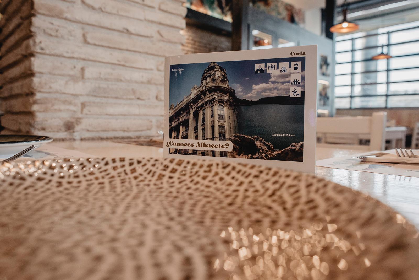 Por cierto, una carta que ya te llama la atención porque es distinta de aspecto, bonita, elegante… y te enseña cosas de Albacete que desconocías. Has descubierto que es más que una inmensa llanura y que tiene una sierra maravillosa y rincones inolvidables como Alcalá del Júcar, Ayna o Chinchilla. La parada ya comienza a ser especial, piensas. Fabián se acerca y te pregunta si has elegido ya o deseas que te haga alguna recomendación. Nunca viene mal una ayuda para decidirse, sobre todo si te la ofrecen con una sonrisa.