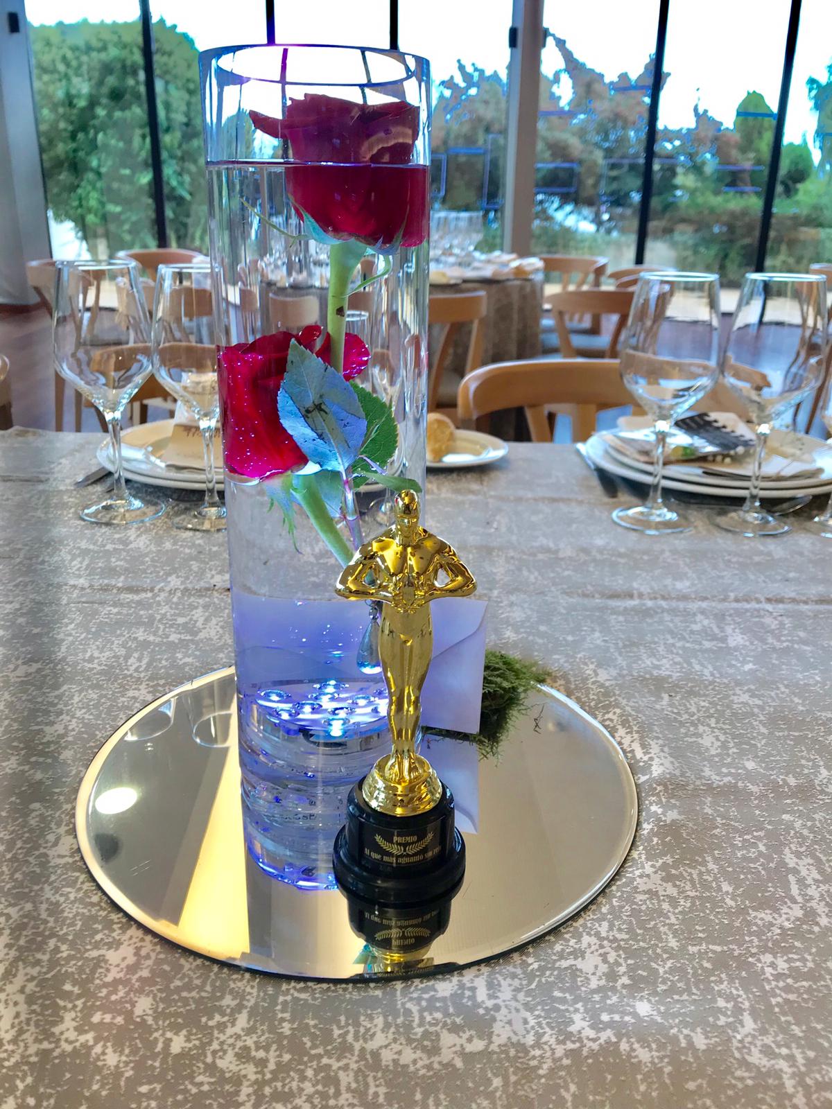 Pero, como os decimos, fue una boda completa en la que no faltó detalle. El mundo del cine tuvo su espacio protagonista (¡por qué sera 😉) en muchos momentos. Por ejemplo, aquí tenéis las mesas nombradas como películas de cine o este Óscar muy especial.
