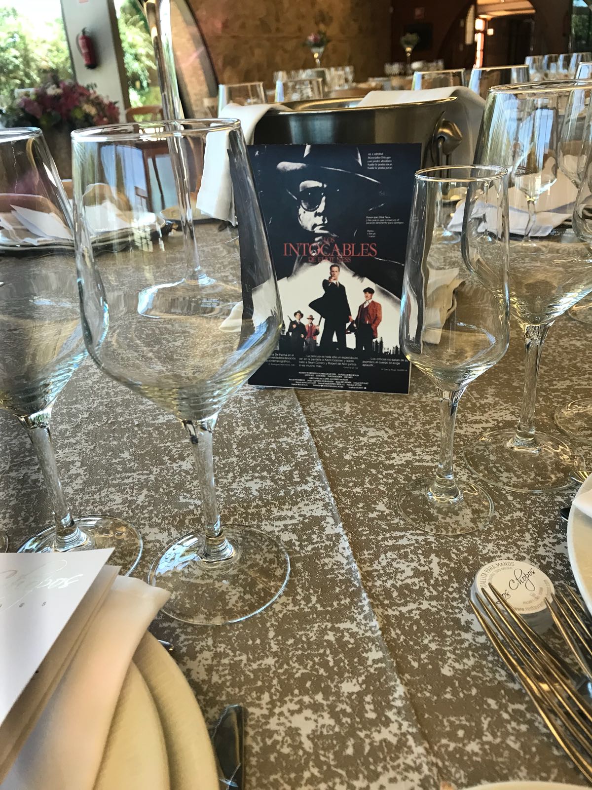 Cruzada la puerta este inmenso rollo de película les indicaba dónde debían sentarse para disfrutar de la película. Lógicamente, cada mesa fue nombrada con un gran film acorde a la magnitud e importancia del evento.