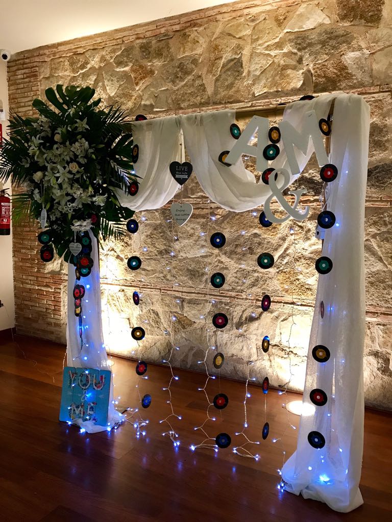 Pero, además, en el photocall no podían faltar los discos, manteniendo de esta forma la temática de la boda.