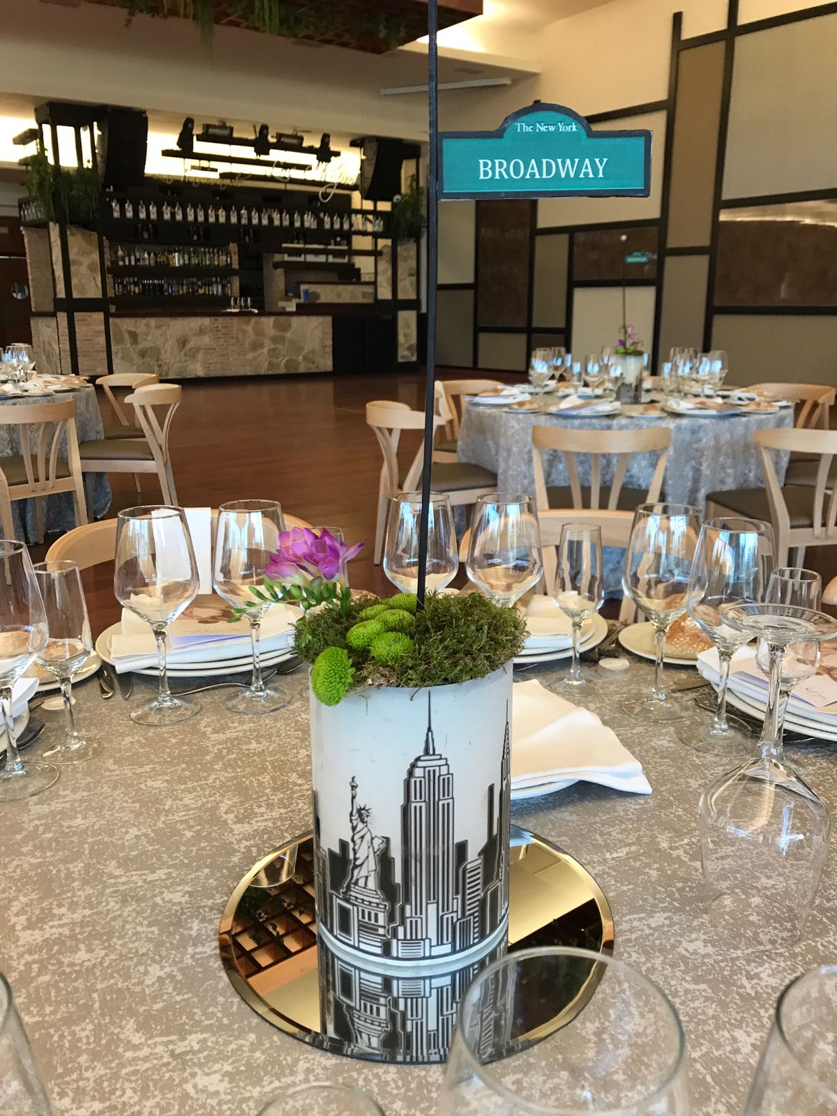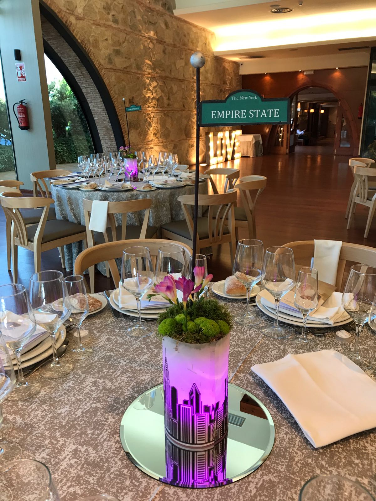 Y, una vez dentro de los Salones, así estaban las mesas listas esperando a los invitados. ¿En qué monumento de Nueva York nos tendríamos que sentar 😉?