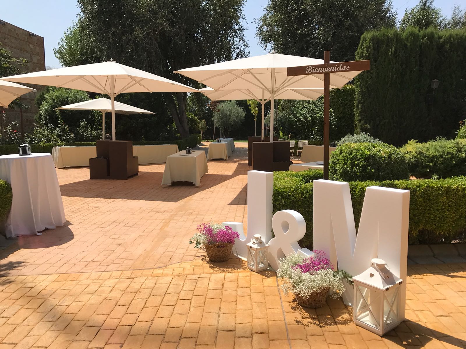 En una soleada mañana, nada más entrar, los invitados se encontraban con estas grandes letras con las iniciales de los novios. Un presagio de que iba a ser una boda preciosa.
